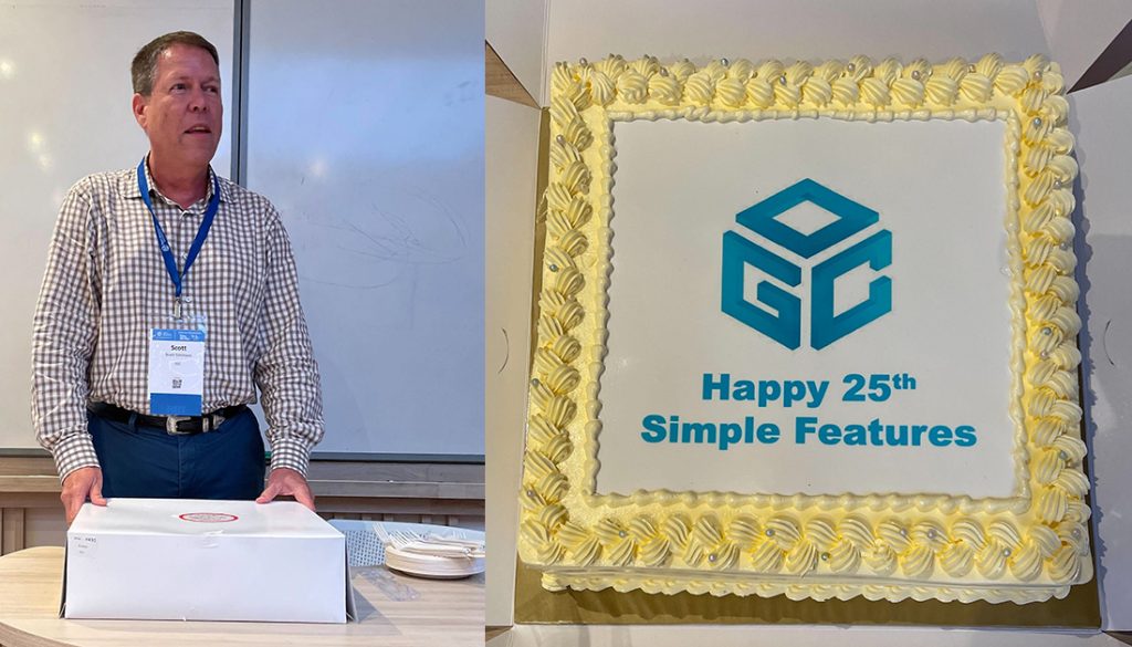 Monday evening’s welcome reception celebrated Simple Features’ 25th birthday with a suitably delicious cake and an enthusiastic rendition of “Happy Birthday.” Simple Features, which is jointly published with ISO, is OGC’s earliest standard and describes how to model the location of “features” (a geometric representation of anything of interest) on a 2-dimensional space representing the surface of a planet. And of course there was the usual Wednesday night “VIP Dinner” (held at the delicious Red House Seafood), where Wuhan University received an OGC Community Impact Award, and a luncheon held on Thursday.