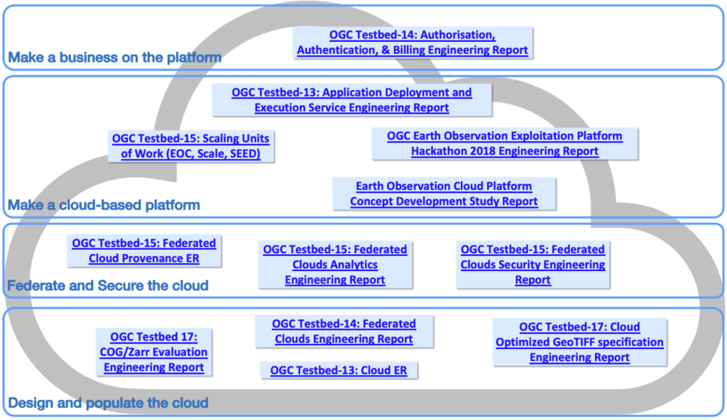 For many years, OGC has been working on numerous aspects of the entire ecosystem of location data in cloud environments. Starting with Testbed 10 in 2013, OGC has been publishing engineering guidance on cloud topics, such as the Testbed 10 Performance of OGC Services in the Cloud: The WMS, WMTS, and WPS cases. From those earliest efforts, OGC members have recognized that our approach to enabling cloud-native geospatial capabilities must be inclusive of this whole ecosystem: formats, services, architectures, and operations. I summarized this perspective at the Outreach Event discussing Advances in OGC Cloud-Native Geospatial Activities and will further elaborate in this blog post.
