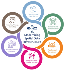 The Open Geospatial Consortium (OGC) is working collaboratively with the global geospatial community, the United Nations Committee of Experts on Global Geospatial Information Management (UN-GGIM), stakeholders at national and sub-national- levels, national geospatial and statistical organizations, and international partners to develop a strategic plan describing a shared national vision, mission, and guiding principles for national and global Spatial Data Infrastructures (SDIs). This activity builds on previous initiatives and in support of this enterprise, particularly The Modernizing Spatial Data Infrastructure (SDI) for Cumulative Effects Concept Development Study supported by the Canada Centre for Mapping and Earth Observation Branch (CCMEO) of Natural Resources Canada in 2020 & 2021. OGC has been commissioned by the U.S. Federal Geographic Data Committee (FGDC) to develop new ideas, concepts, and components to fundamentally drive modernization of the SDI in the United States and inform SDI modernization globally. The tools and capabilities detailed through the Call for Contributions will be applied to create actionable NSDI implementation plans, including scalable technical architectures, governance frameworks, and operational models tailored to national and sub-national needs.